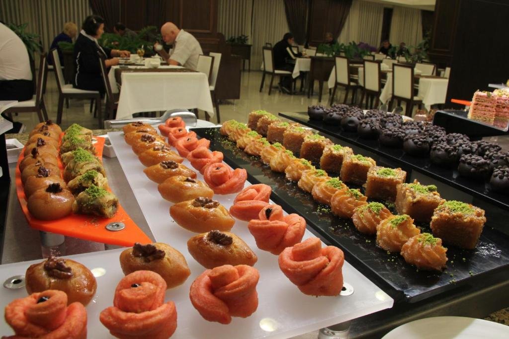 Питание предоставляется по системе «шведский стол» три раза в день. Гостям предлагаются блюда азербайджанской и европейской кухни, а также диетическое питание по назначению врача.