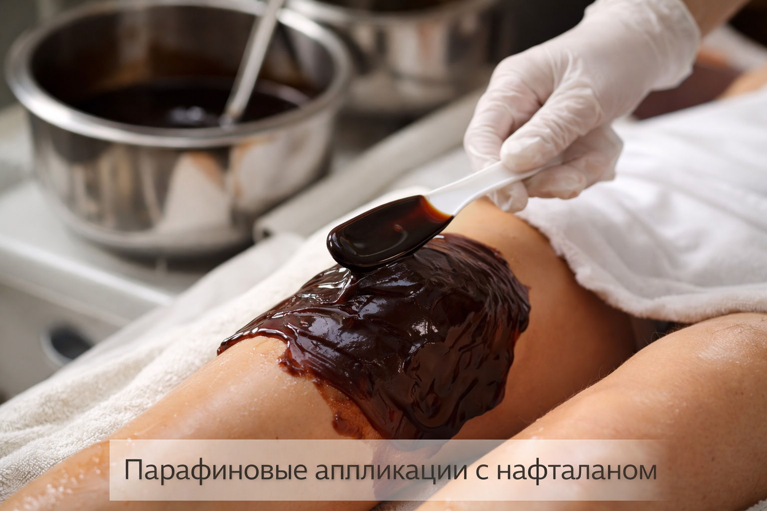 Пациент погружается в тёплую нафталановую нефть (37–38°C).