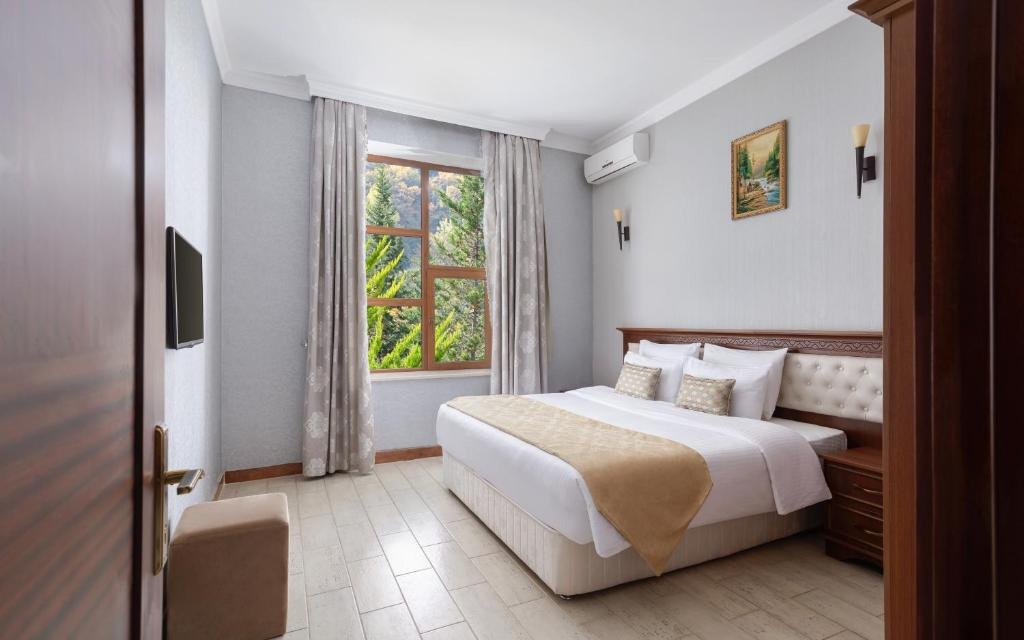 Некоторые номера предлагают панорамные виды на горы и леса Кавказа, создавая атмосферу полного отдыха и уединения.